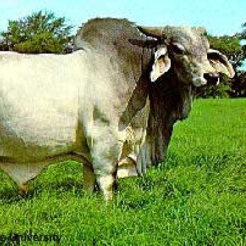 Brahman cattle come from India, and are the most mutual cattle breed in the world. Over the centuries, Brahmans take developed resistance to pests, parasites, and diseases, and the ability to survive inadequate nutrient and harsh weather. They have a large hump over their shoulder and neck, upward-curving horns, large ears, and excess peel under their necks and chests, which helps keep them cool. They also are able to sweat better than well-nigh cattle, and secrete an oil which helps repel insects.