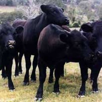 Black Angus cattle, likewise chosen Aberdeen Angus, are the nigh popular breed in the U.S., and thanks to some splendid marketing, their meat is in demand, which means these cattle -- and crossbreds with mostly black markings -- often bring a premium at the sale befouled. This breed comes from northeastern Scotland and was get-go brought to the U.Due south. by a Kansas rancher in 1873. When crossed with Texas longhorn cows, the hornless black calves brought winter hardiness to the mix. Angus are naturally polled (hornless), and take black pare and hair. They are moderately sized, generally proficient mothers, and are known for early on development, ease of fleshing, skilful milk supply, and first-class marbling.