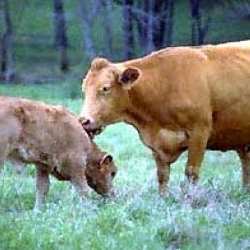 The low-cal-colored Charolais originated in France, where information technology was used for meat, milk, and drafting. The animals' large size and sturdy frame gave them the power to piece of work in fields and pull wagons. The outset Charolais came into the U.South. past fashion of Mexico in the 1930s. Because of a illness outbreak in Mexico, the breed was not immune to be imported to Due north America until 1965. Therefore, many of today'south American Charolais have other breeds in their lineage as well. Charolais exercise well under a variety of environmental conditions. They graze aggressively in warm atmospheric condition, withstand the cold, and have heavy calves. For this reason, adding a Charolais bull to a herd tin can improve the size and ruggedness of calves.