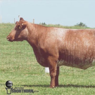 Shorthorns originated on the northeast coast of England and were brought to America in 1783 and chosen Durham cattle. They were pop with settlers, since they were very adaptable, and could exist used for meat and milk, and to power wagons and plows. They tin be either horned or naturally polled. Polled shorthorns were the first major beef brood to be developed in the U.Due south. in the 1880s. Both types of shorthorns are known for adaptability, mothering ability, reproductive performance, proficient disposition, longevity, and good feed conversion.